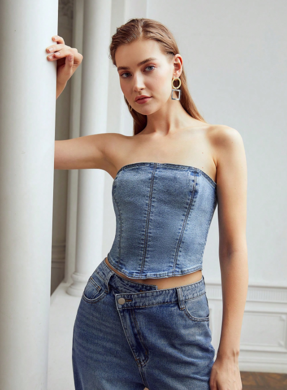 • «MOTF PREMIUM Top bandeau con cremallera trasera mezclilla.