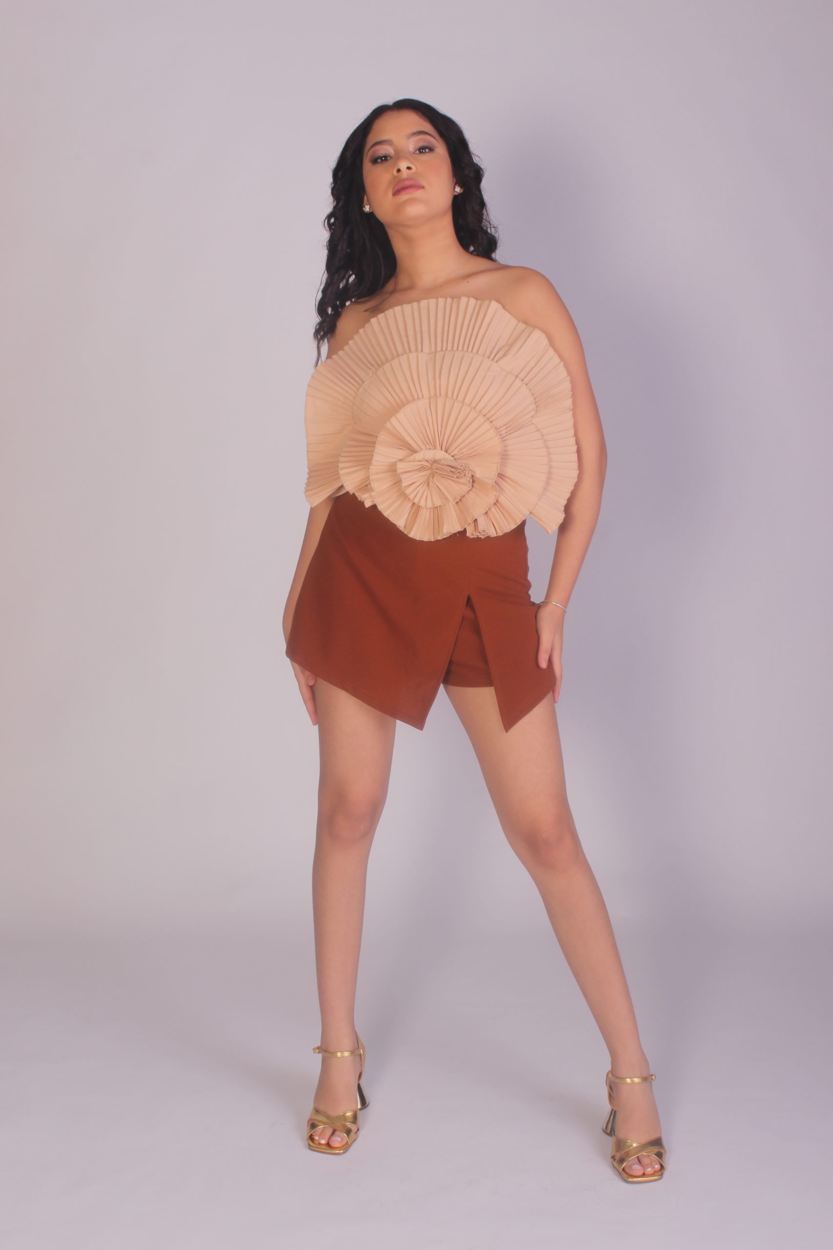 • Aloruh – Bandeau Elegante con Flores 3D en Pliegues (Crema & Naranja)