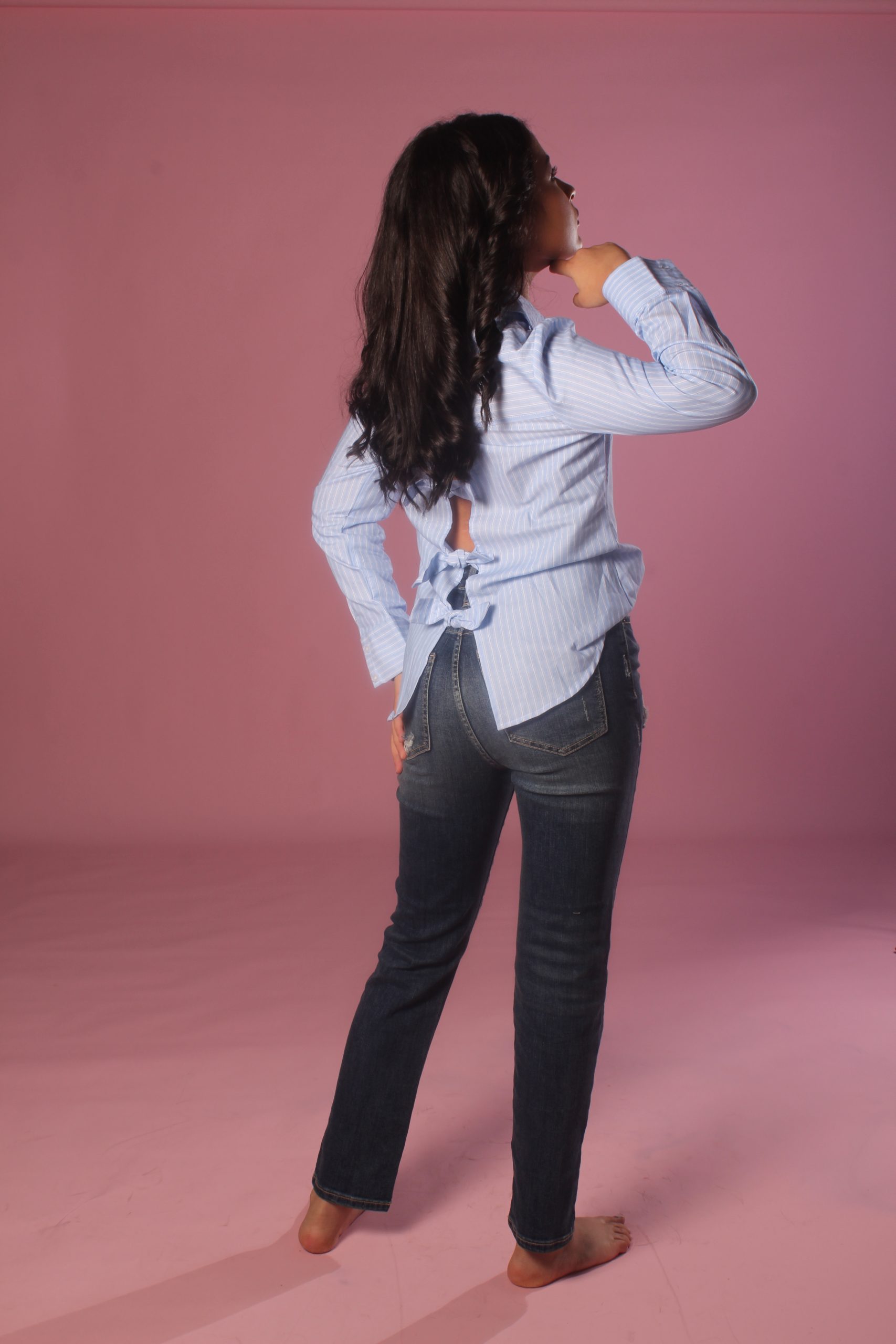 • Camisa con lazo en la espalda y rayas