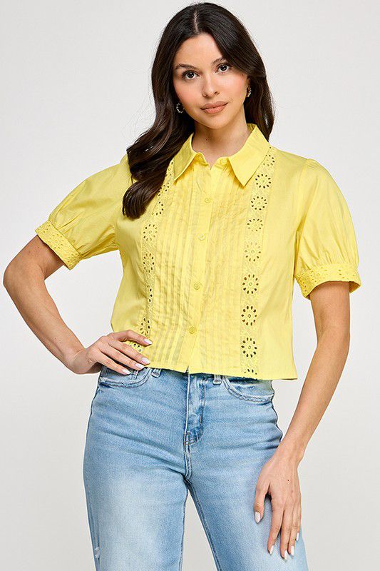• Blusa con botones y ribete de encaje fruncido Milk Honey