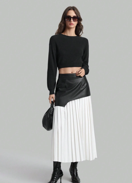 - «Ontre Falda elegante de mujer con pretina alta, piel sintética negra con parches en blanco y bloques de color, para otoño/invierno.RD$1,979.00Seleccionar opciones Este producto tiene múltiples variantes. Las opciones se pueden elegir en la página de producto